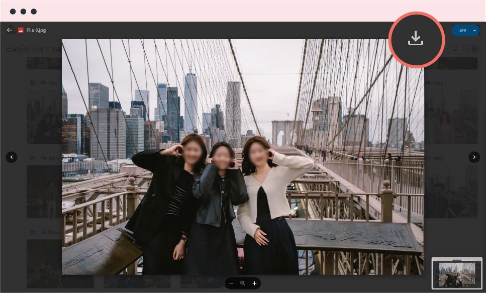 참여하신 투어 일정의 사진은 다운로드 폴더에 일괄 업로드되어 있어 쉽게 확인하실 수 있습니다.