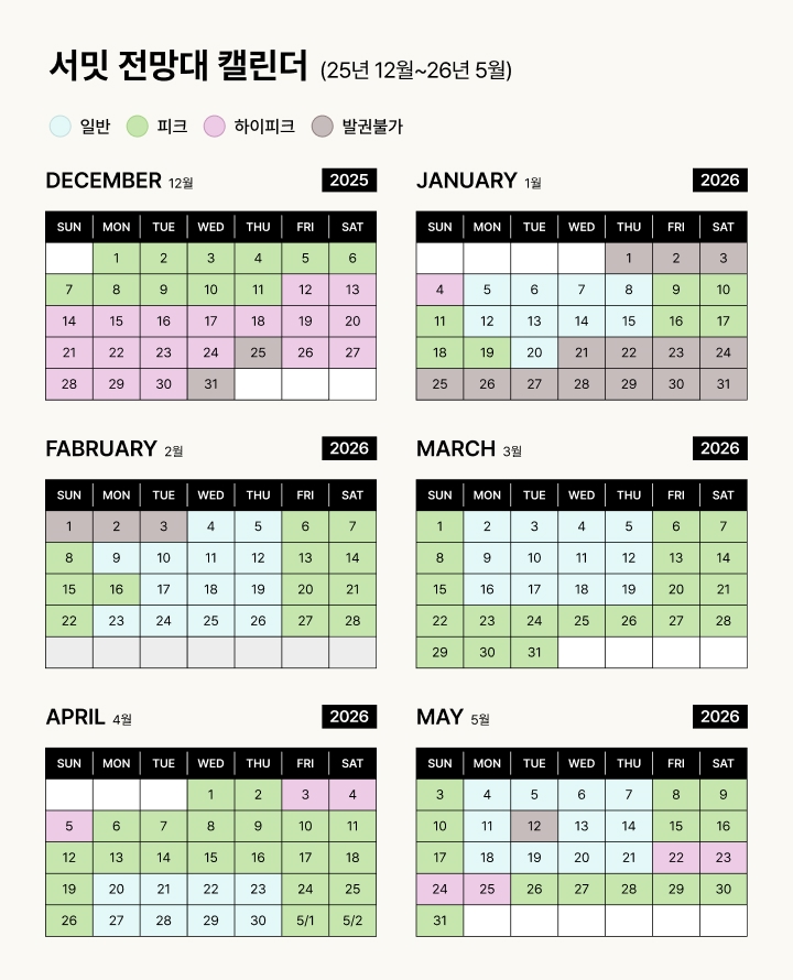 📣 해당 상품은 써밋 전망대 피크시즌 전용 티켓이에요. 페이지 하단의 일반/피크/하이피크 일정을 확인해 주세요.